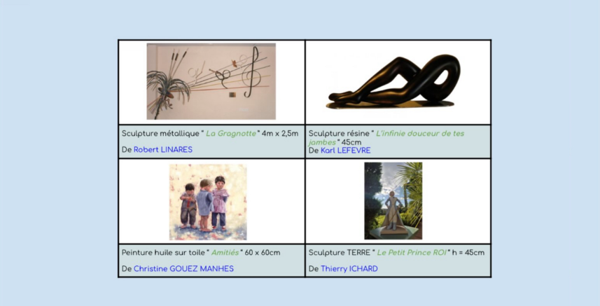 Pendant ces trois jours, 25 artistes seront réunis pour présenter leurs œuvres. Peinture et sculpture se rencontrent dans une exposition unique, au service d’une cause solidaire. Chaque œuvre contribue à soutenir les actions de l’association The Hope of Princesse Manon.
